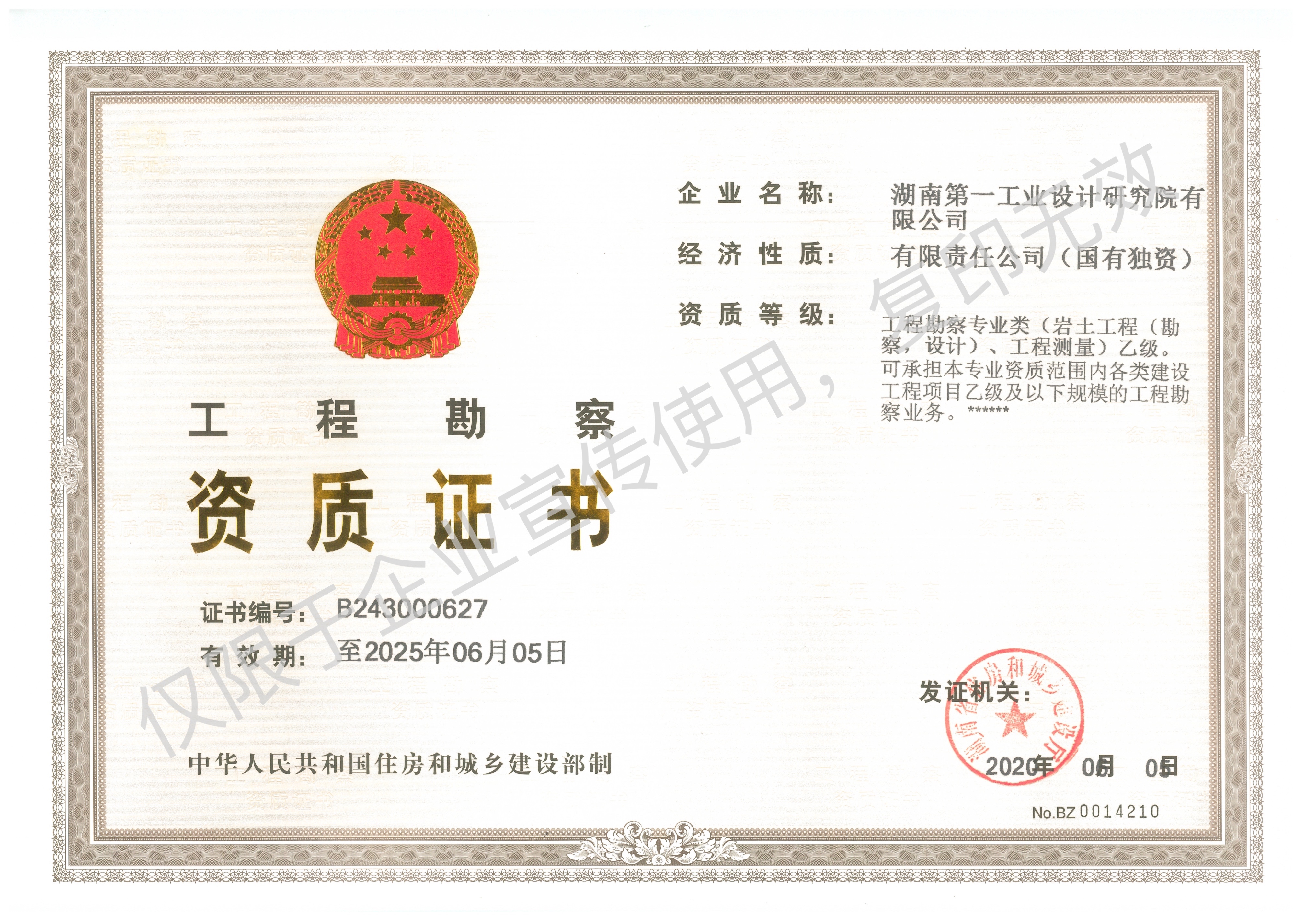 工程設(shè)計(jì)乙級資質(zhì)證書