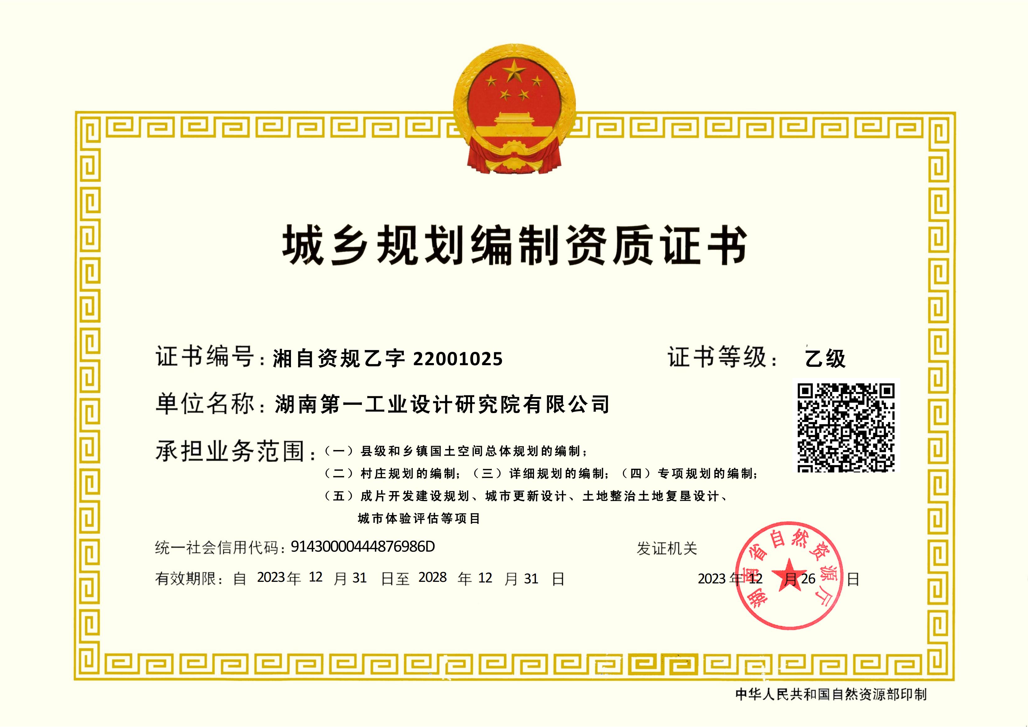 城市規(guī)劃編制資質(zhì)證書