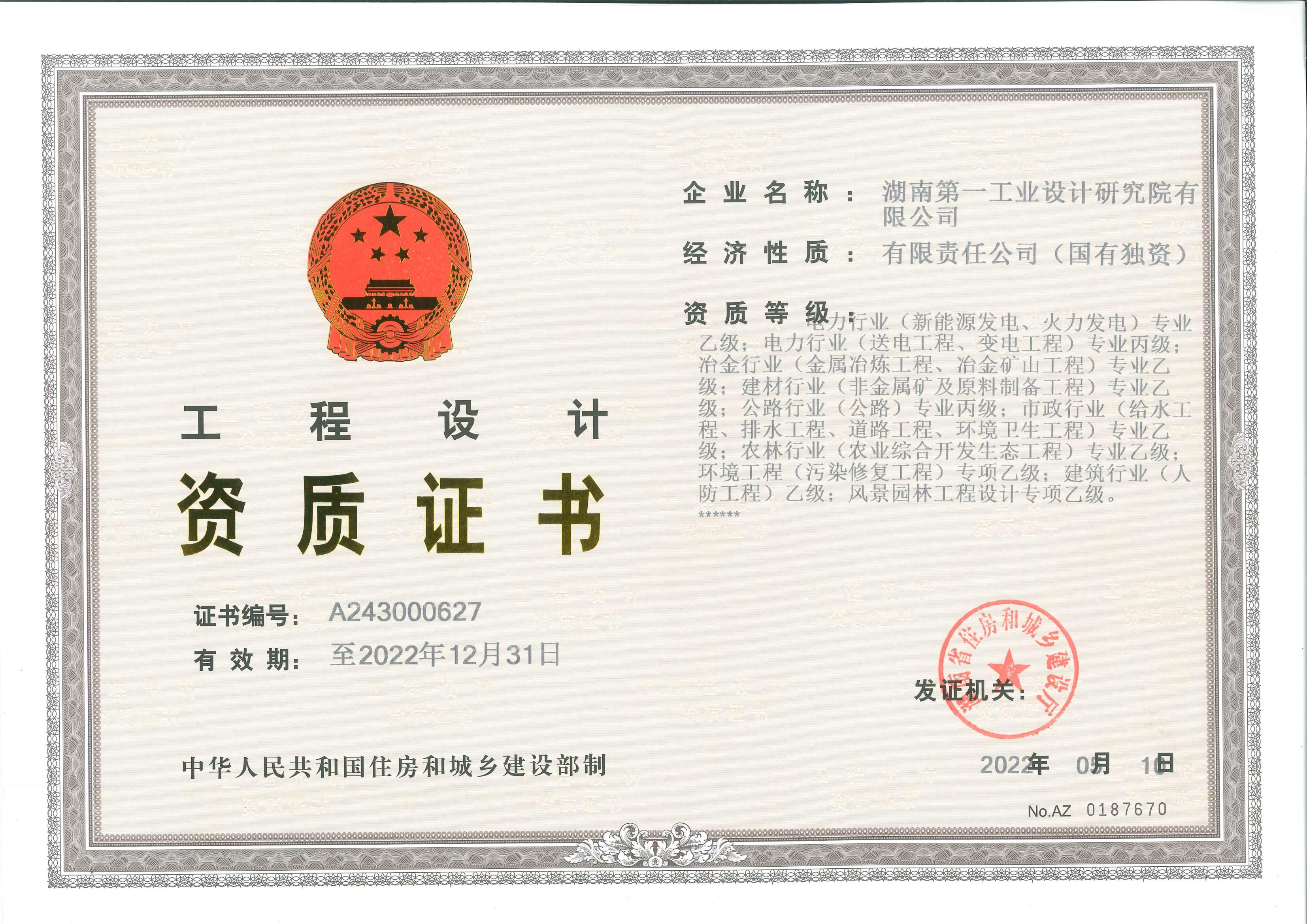 工程設(shè)計(jì)資質(zhì)證書